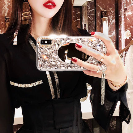 新款水钻镜子三星s8手机壳潮牌s8+/plus保护套化妆神器s9防摔壳流苏s9+/plus奢华时尚全包韩版女款