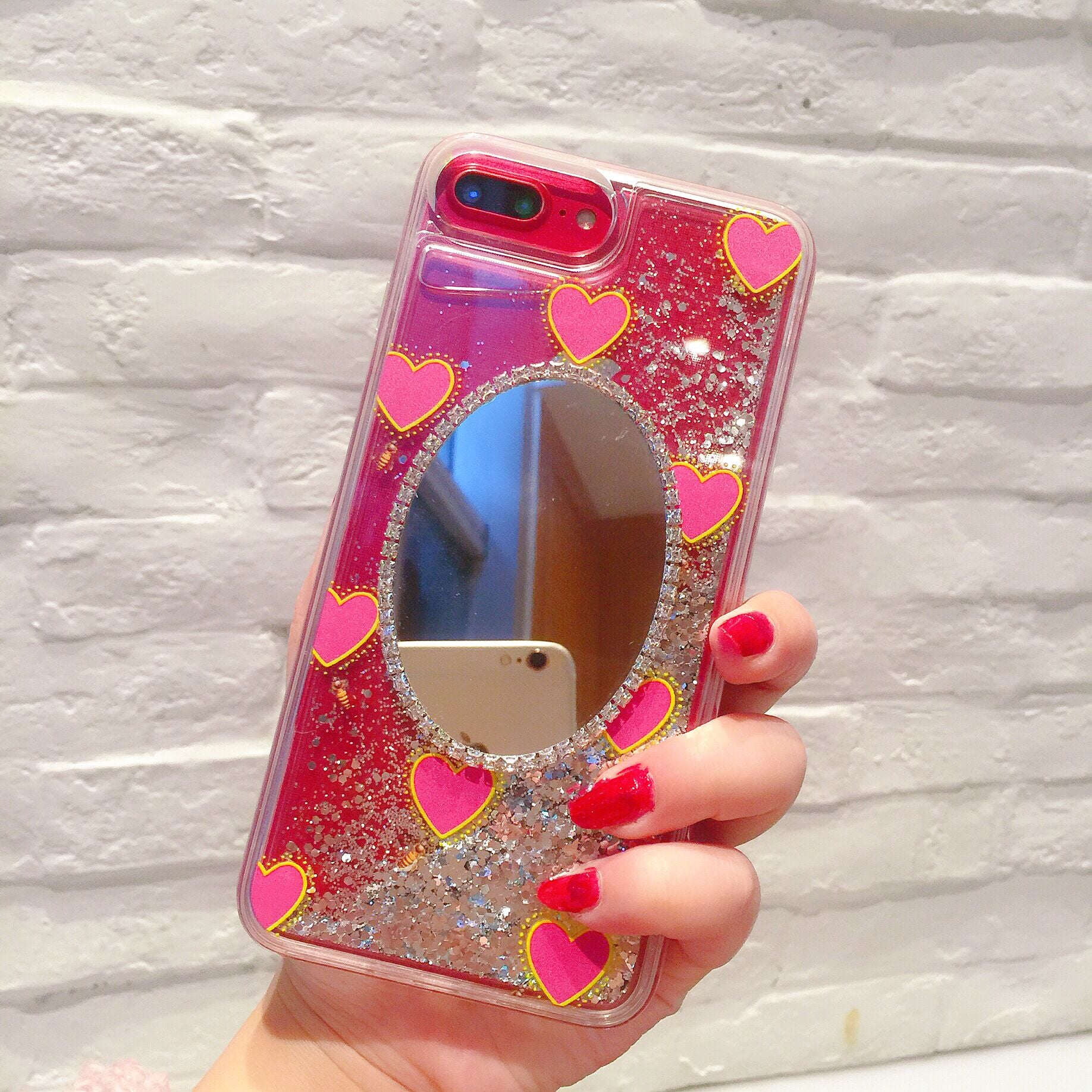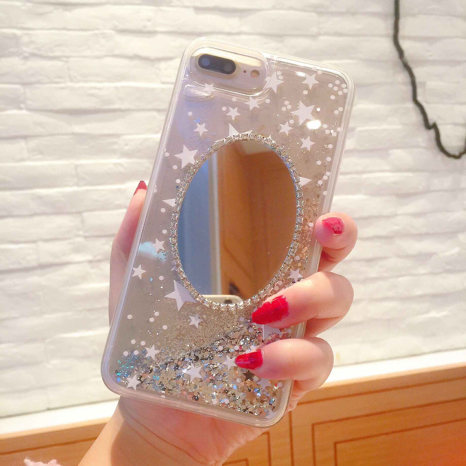 日韩镜子闪粉水钻苹果6plus手机壳iPhone7镜面x透明女款六软硅胶8