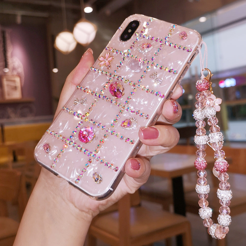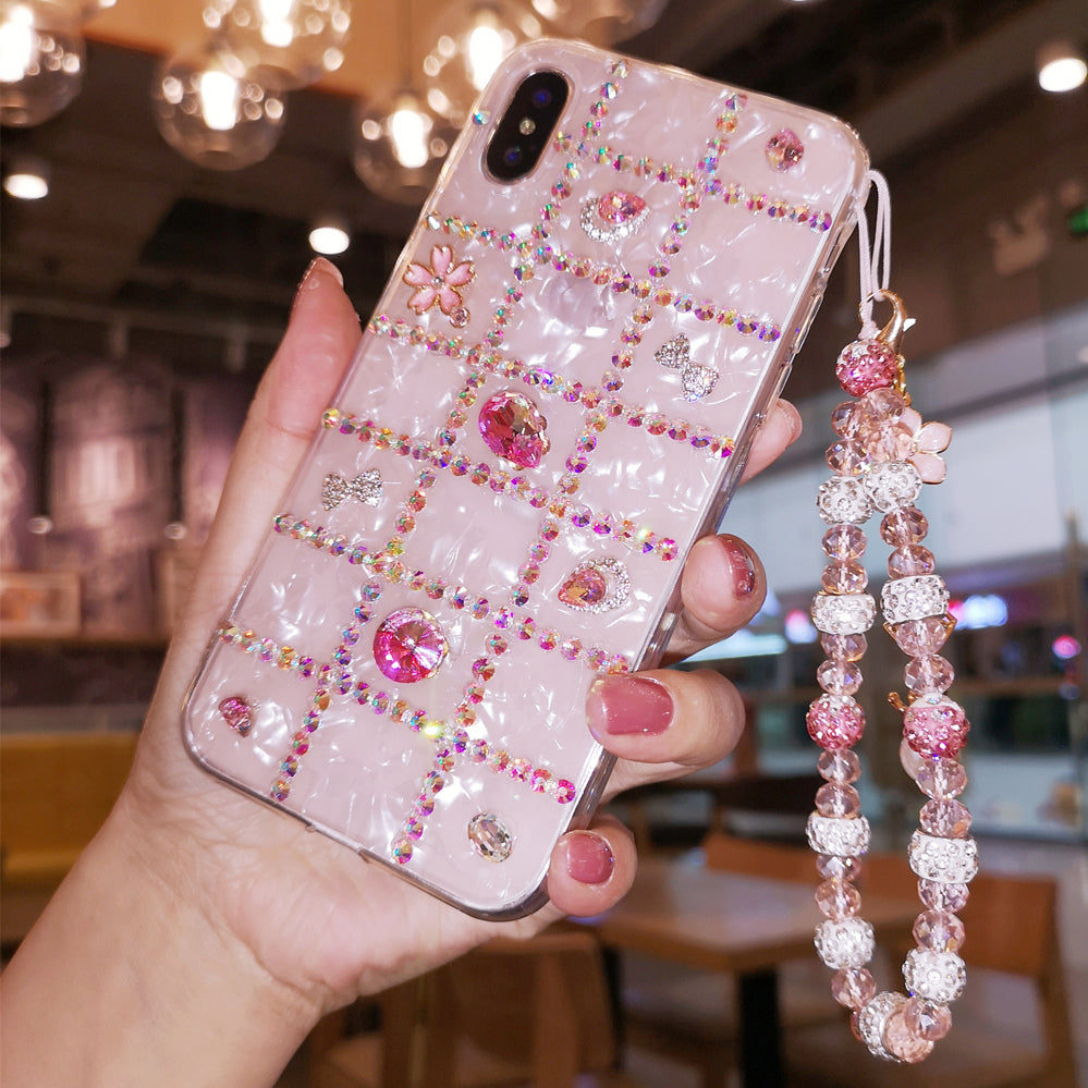 网红夏季iphoneXs max苹果8plus手机壳7水钻贝壳纹XR保护套6少女