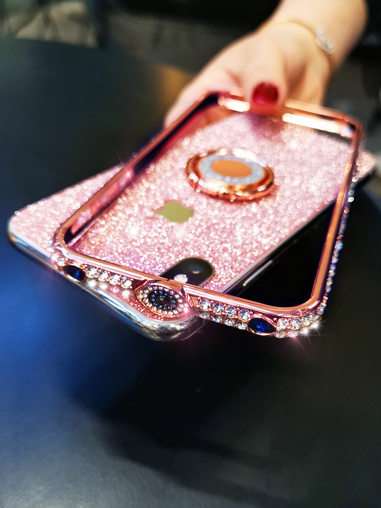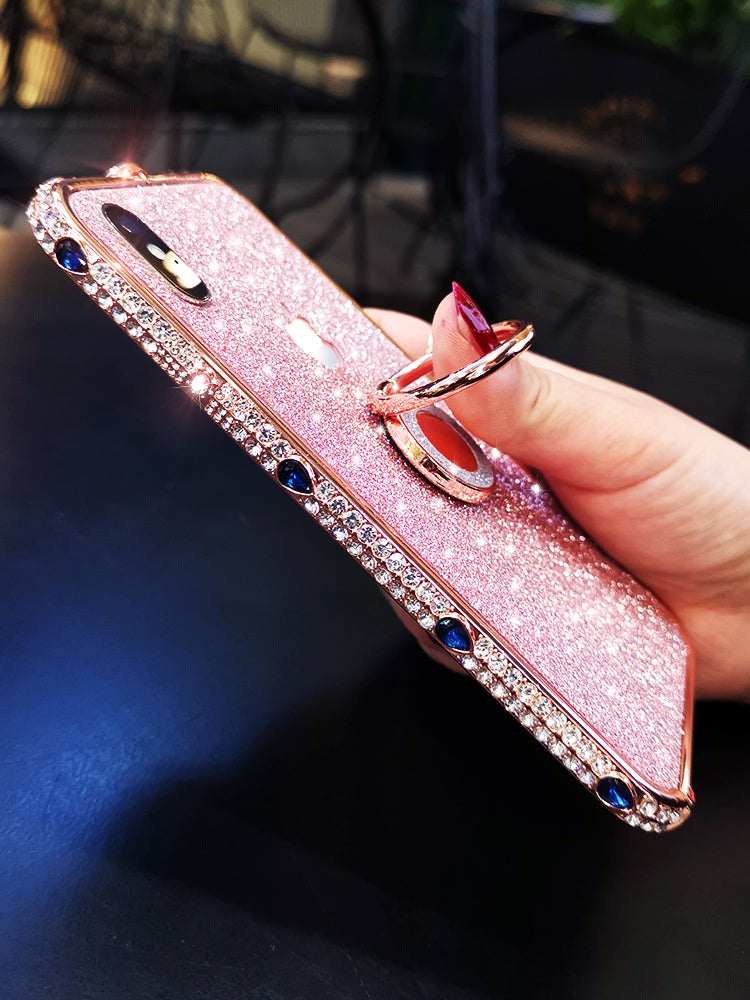 苹果8plus手机壳水钻iphone7plus满钻6s金属边框带闪粉8女潮6plus镶钻苹果X边框奢华XR全包防摔xs网红max新款
