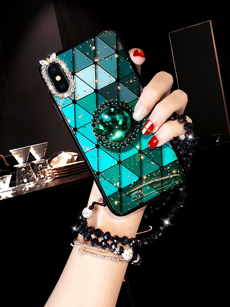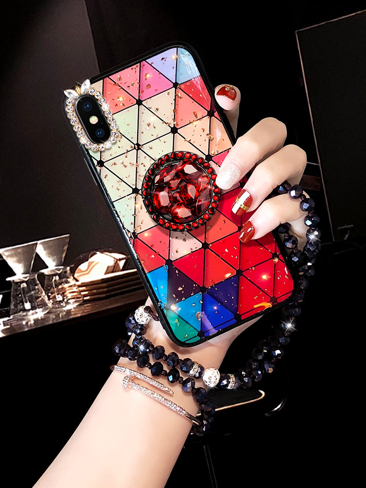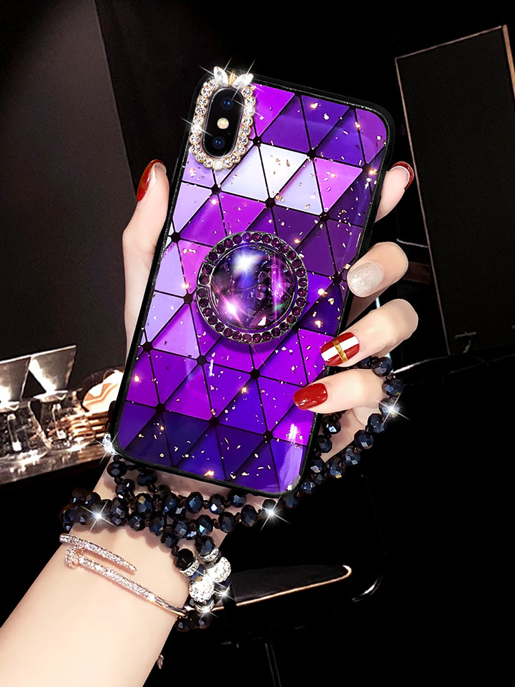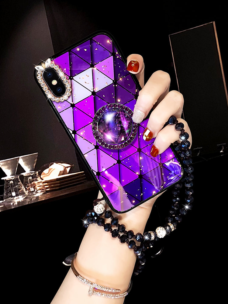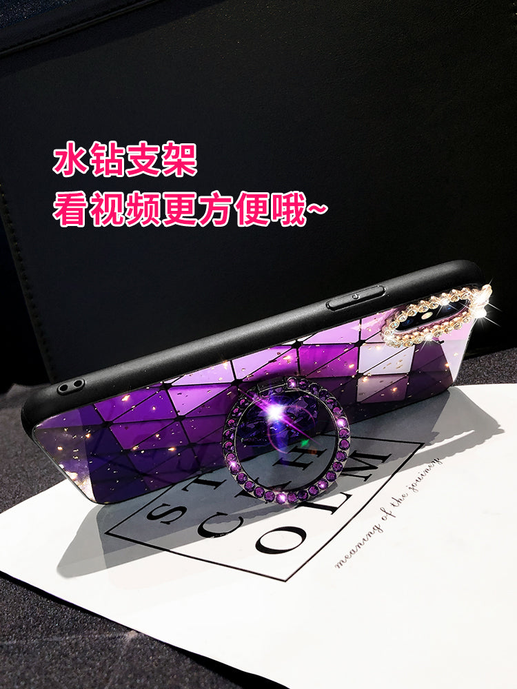 苹果x手机壳女款镶钻xs网红xr菱格xsmax潮牌iphonex硅胶xr保护套带挂绳时尚max水钻支架个性抖音潮女创意潮款