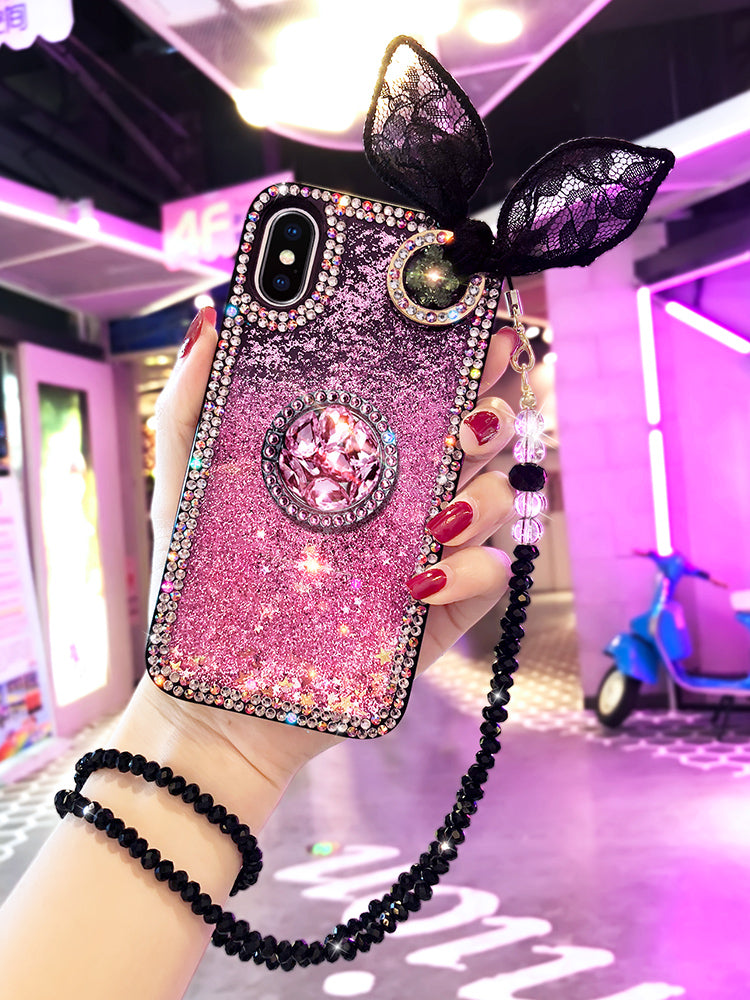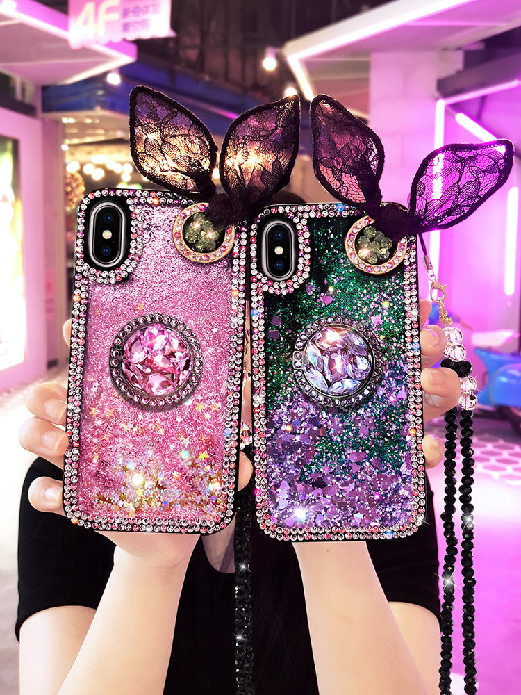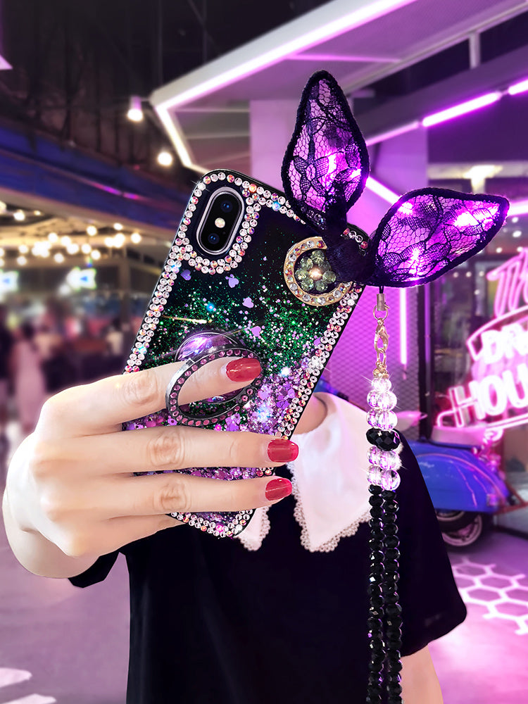 苹果x手机壳女xr网红8plus流沙xs液体流动iphone6/6s时尚蕾丝6splus个性耳朵xsmax创意7硅胶7p全包边抖音潮款