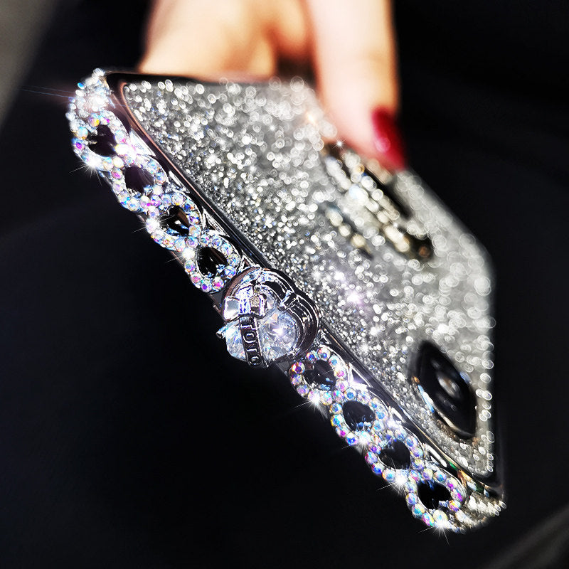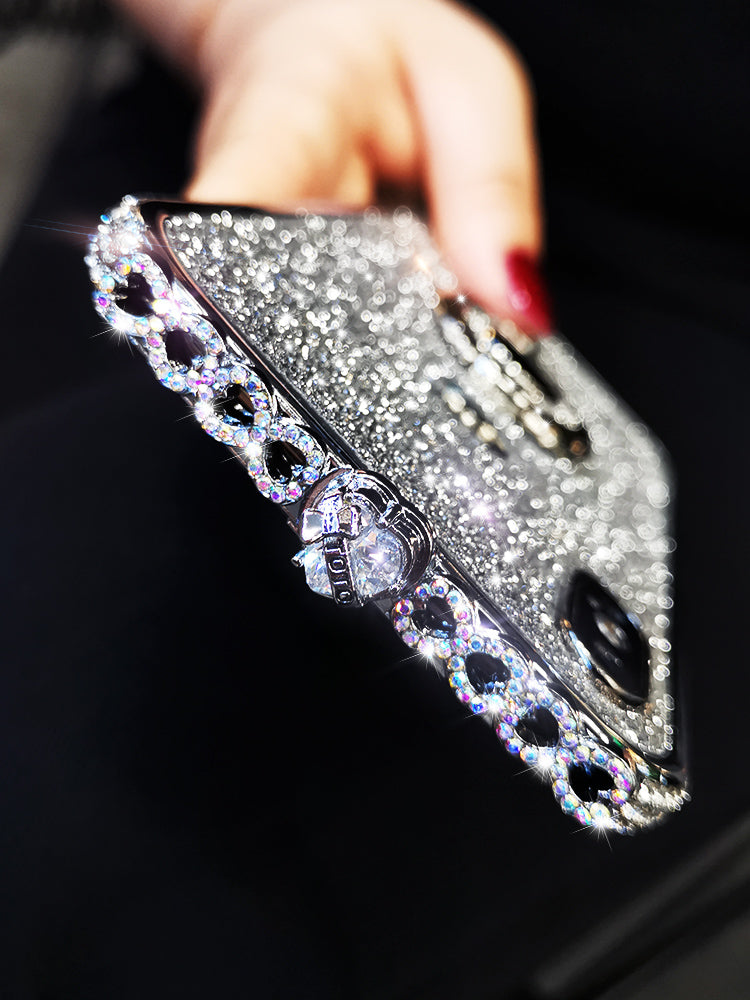 苹果XsMax【亮黑-白钻】彩心+闪膜+指环