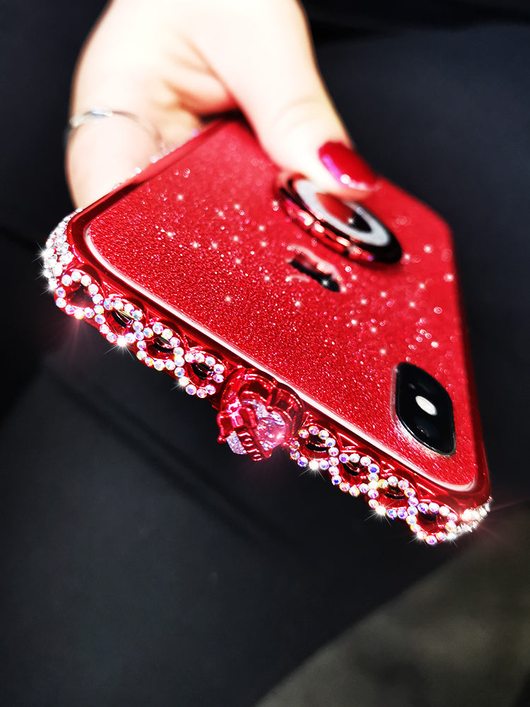 苹果X/Xs【激情红-白钻】彩心+闪膜+指环