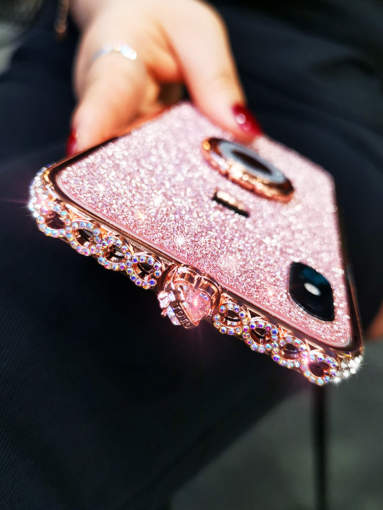 苹果XsMax【玫瑰金-白钻】彩心+闪膜+指环
