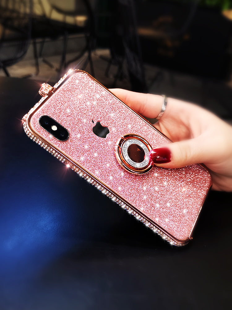 苹果x手机壳新款xs max水钻金属边框iphonex防摔满钻网红xR女闪粉8plus带钻7plus高档6p边框壳6splus个性创意