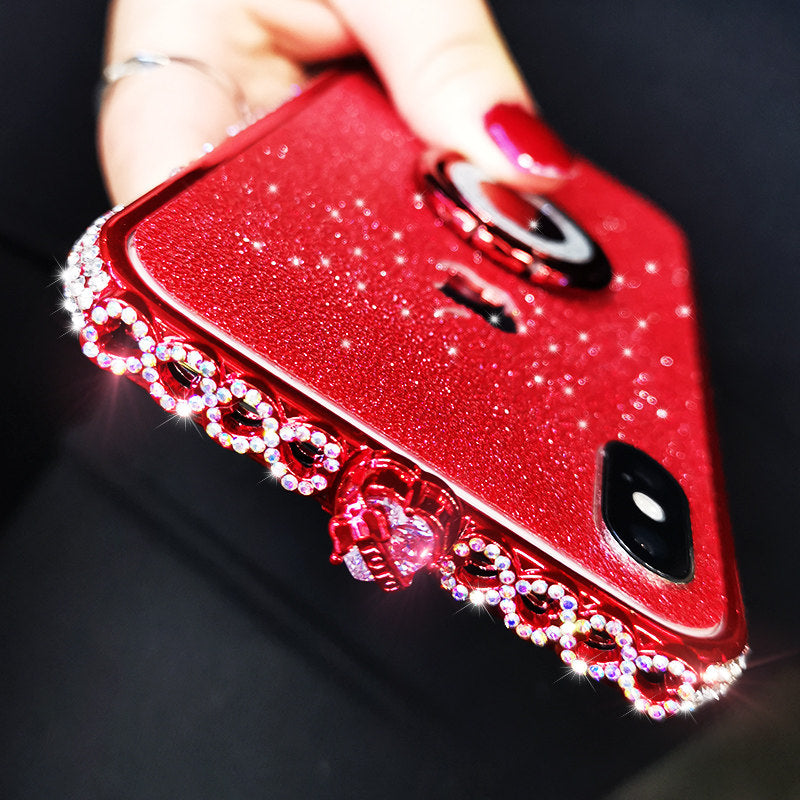 苹果8Plus【亮黑-白钻】彩心+闪膜+指环
