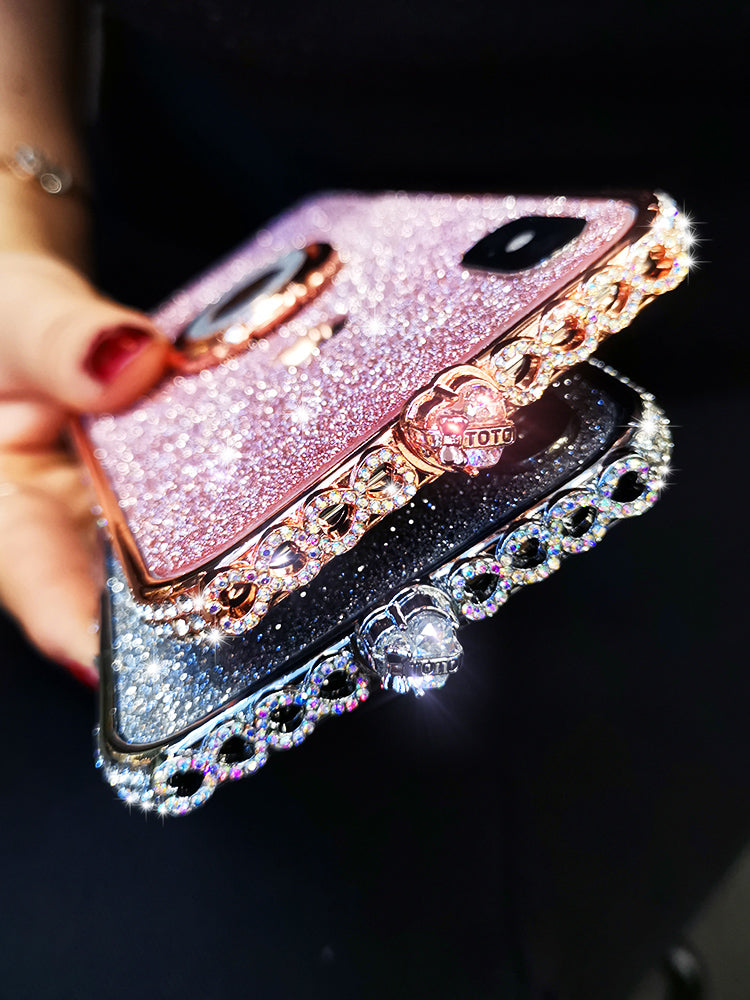 苹果XR【亮黑-白钻】彩心+闪膜+指环