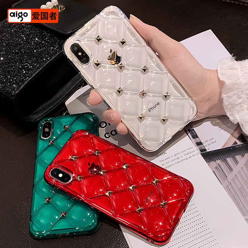 苹果X【全透】柔软硅胶★时尚铆钉★创意水感
