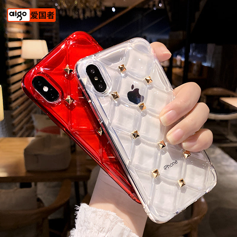 苹果X【透红】柔软硅胶★时尚铆钉★创意水感