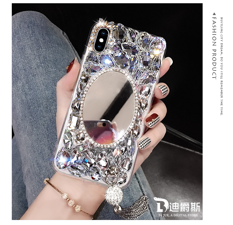 财旭OPPOreno2手机壳网红新款a11x女款透明水钻补妆镜子流苏reno2防摔OPPOa11x软硅胶OPPO reno2全包边潮牌