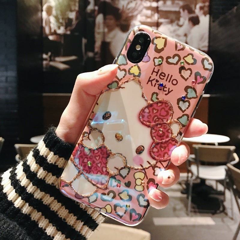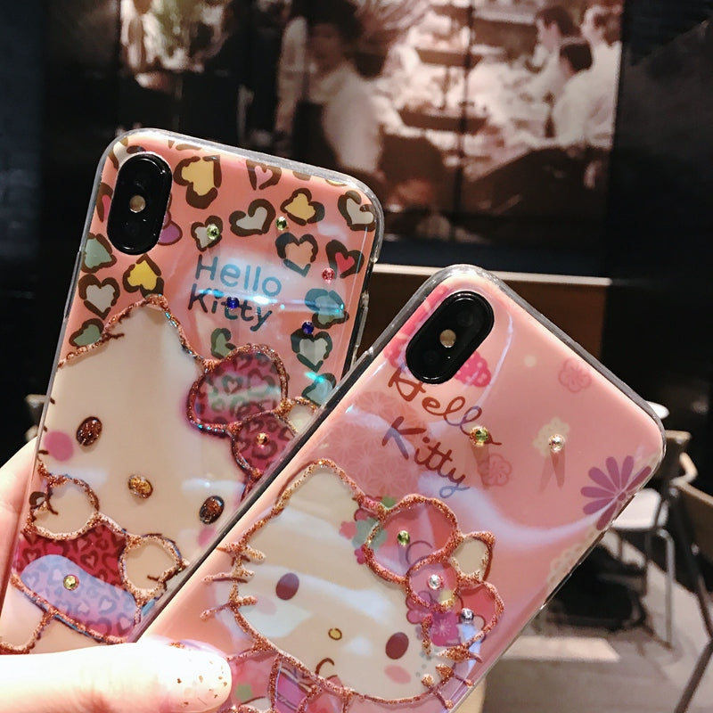 苹果x/xs 爱心花底闪钻kitty送钢化膜+指环扣