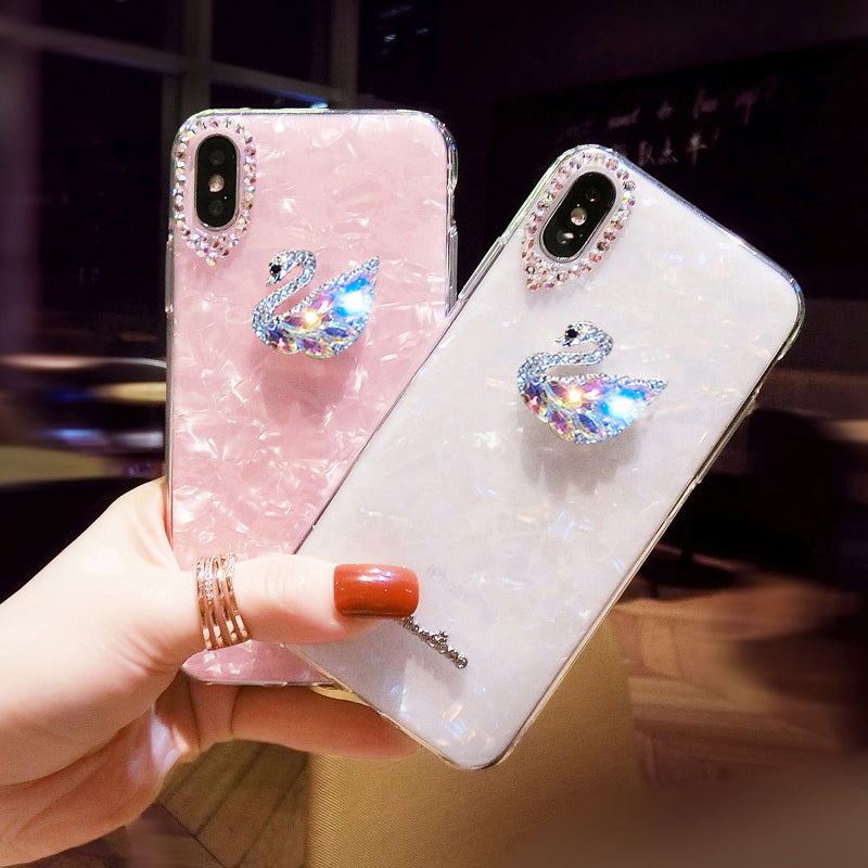 新款苹果x手机壳女iphone6贝壳11pro硅胶壳11pro max炫彩7plus包边软8plus挂绳11天鹅8水钻少女xs包边软
