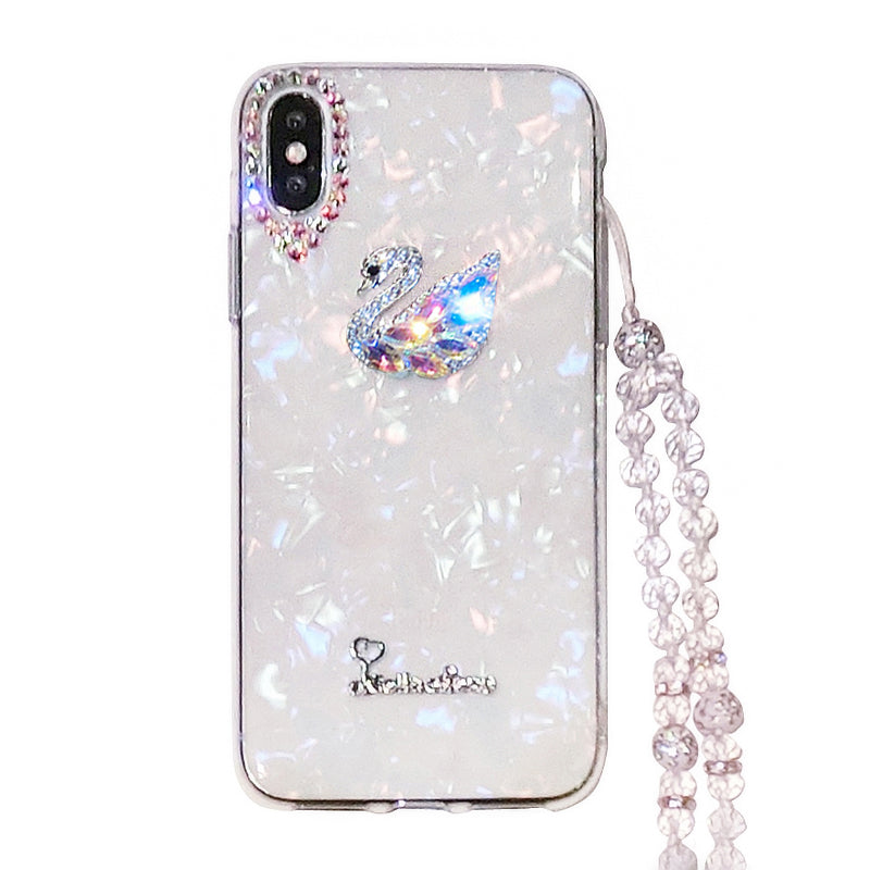 iPhone11【6.1】-白贝壳+炫彩天鹅+水晶绳