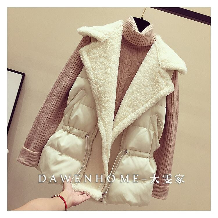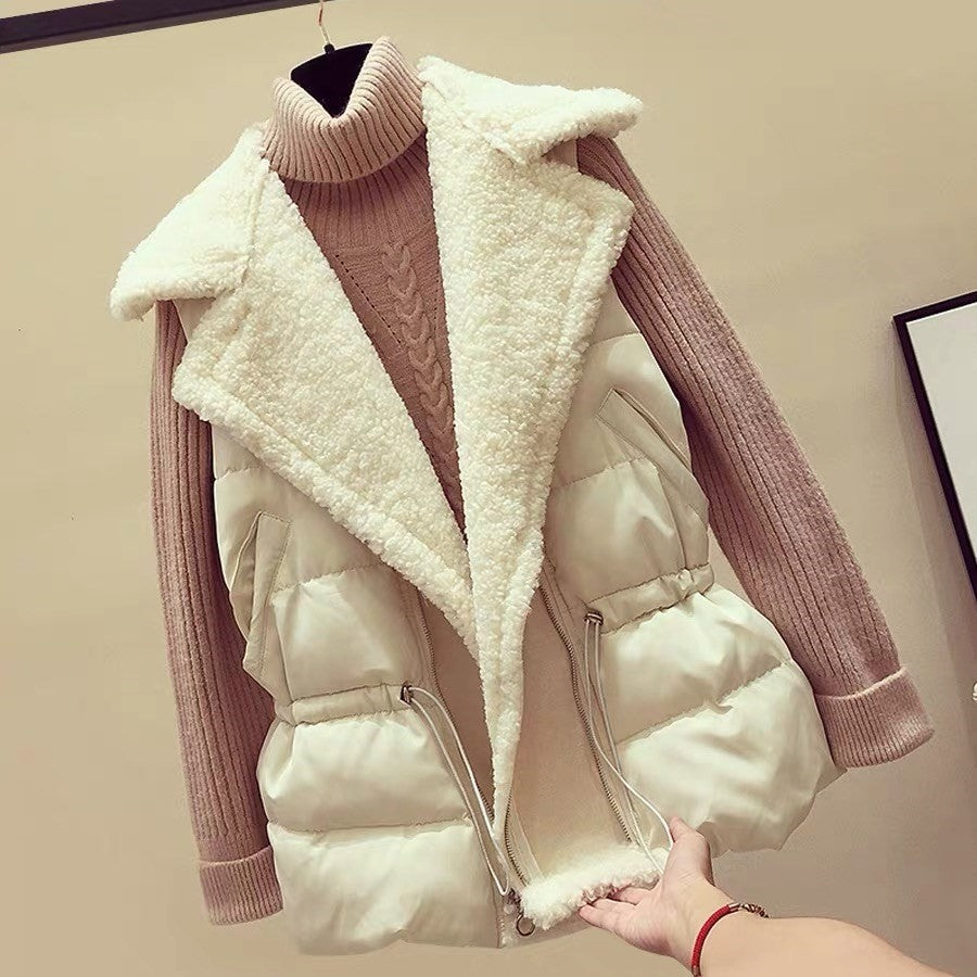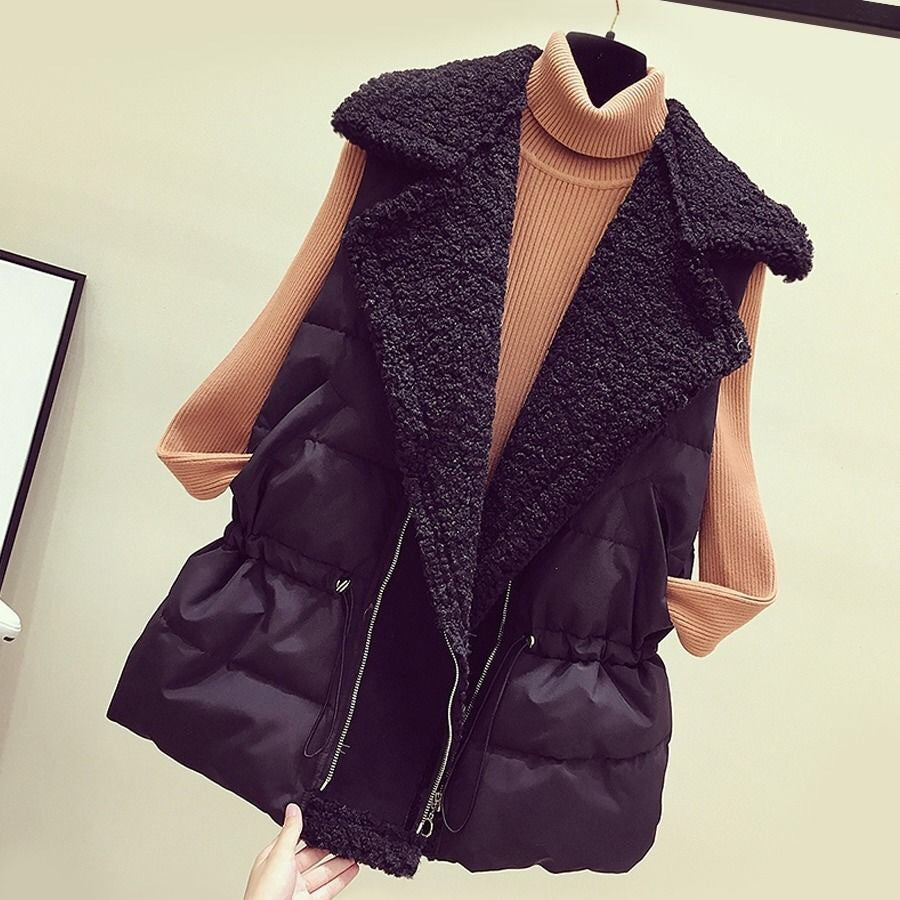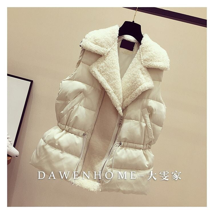 羊羔毛马甲女秋冬季韩版宽松收腰百搭背心坎肩外穿短款羽绒棉马夹